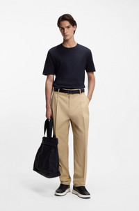 DETAILS With tonal logo tape, this slim-fitting stretch HUGO Menswear T-shirt is a true all-rounder. Rich in mercerized cotton for extra softness. Slim fit Neckline: Crew neck Short sleeves Standard length Dimerstee - 50542969 QUALITY & CARE INSTRUCTIONS Material: 100% Cotton Reduced Dry Clean Machine Wash Cold Gentle Do Not Tumble Dry Do Not Bleach Iron Low Heat