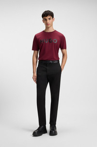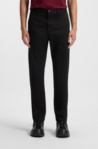 SIZE AND FIT The model wears a size 32/32 and is 6'2" tall with a, 34" chest, 29" waist and 35" hips. DETAILS David251D - 50530886 Adaptable trousers by HUGO Menswear, cut to a defined fit. This pair is crafted in rich gabardine with stretch. Red logo label. Belt loops. Slim fit Regular rise Button and zip closure Slim leg Pockets bottom front: Side slash pockets Pockets bottom back: Welt pocket Fit foot width: 35,0 cm (13.8 inches) QUALITY & CARE INSTRUCTIONS Do Not Tumble Dry Quality: 98% Cotton, 2% Elastane, pocketing: 100% Cotton Iron Low Heat Do Not Bleach Machine Wash Cold Gentle Reduced Dry Clean