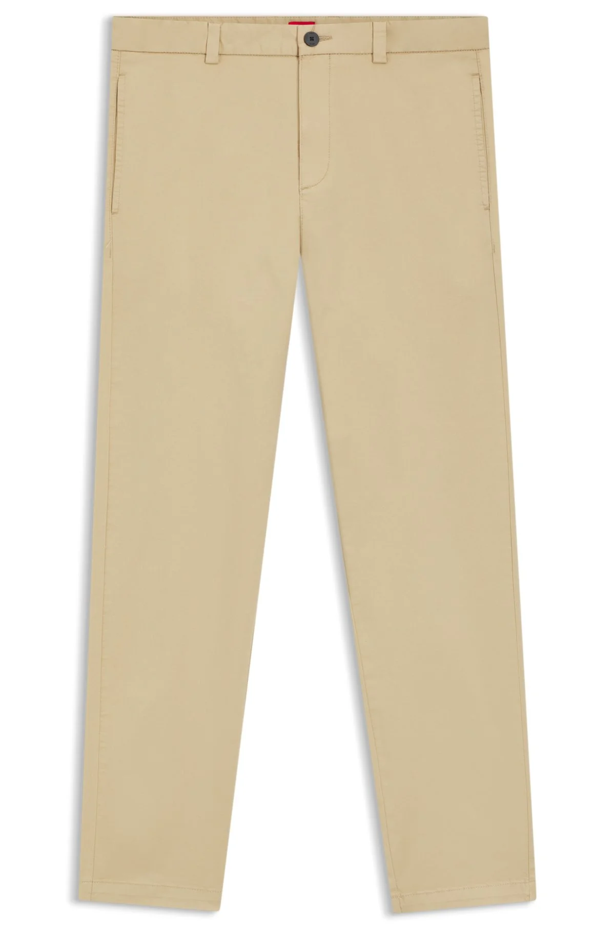SIZE AND FIT The model wears a size 32/32 and is 6'1" tall with a, 36" chest, 28" waist and 36" hips. DETAILS David251D - 50530886 Adaptable trousers by HUGO Menswear, cut to a defined fit. This pair is crafted in rich gabardine with stretch. Red logo label. Belt loops. Slim fit Regular rise Button and zip closure Slim leg Pockets bottom front: Side slash pockets Pockets bottom back: Welt pocket Fit foot width: 35,0 cm (13.8 inches) QUALITY & CARE INSTRUCTIONS Reduced Dry Clean Do Not Bleach Do Not Tumble Dry Iron Low Heat Machine Wash Cold Gentle Quality: 98% Cotton, 2% Elastane, pocketing: 100% Cotton