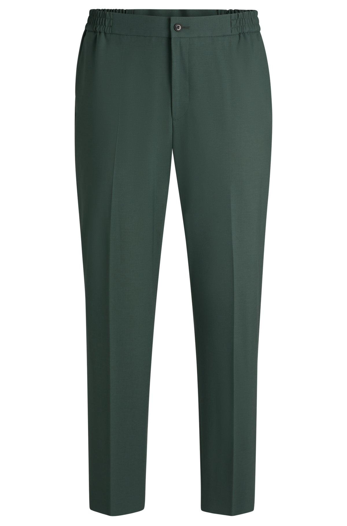 SIZE AND FIT The model wears a size 32R and is 6'2" tall with a, 35" chest, 27" waist and 35" hips. DETAILS Gos233F1X - 50530110 Super-flex trousers with generous stretch by HUGO Menswear. This pair is cut to a slim fit in wool for a refined look. Slim fit Fit foot width: 36,0 cm (14.2 inches) QUALITY & CARE INSTRUCTIONS Quality: 51% Wool, 44% Polyester, 5% Elastane, pocketing: 65% Polyester, 35% Cotton Iron Low Heat Do Not Wash Reduced Dry Clean Do Not Bleach Do Not Tumble Dry