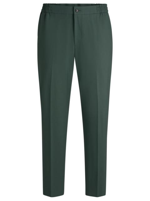 SIZE AND FIT The model wears a size 32R and is 6'2" tall with a, 36" chest, 28" waist and 36" hips. DETAILS Gos233F1X - 50530110 Super-flex trousers with generous stretch by HUGO Menswear. This pair is cut to a slim fit in wool for a refined look. Slim fit Fit foot width: 36,0 cm (14.2 inches) QUALITY & CARE INSTRUCTIONS Quality: 51% Wool, 44% Polyester, 5% Elastane, pocketing: 65% Polyester, 35% Cotton Do Not Tumble Dry Reduced Dry Clean Iron Low Heat Do Not Wash Do Not Bleach