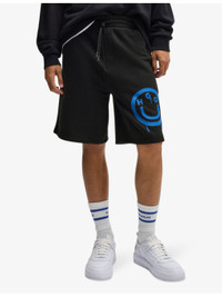 PRODUCT DETAILS - HUGO cotton-jersey shorts - 100% cotton - Pulls on - Relaxed fit, elasticated waistband with drawstring, two slip pockets at front, graffiti-style smiley graphic printed on front and back, jetted pocket at back - Machine wash at 30°C - Midweight, non-stretch Ref: R04284996