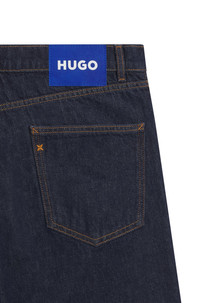 SIZE AND FIT The model wears a size 32/32 and is 6'2" tall with a, 35" chest, 27" waist and 35" hips. DETAILS Jonah - 50511484 With an authentic dark-blue hue in weighty denim, these HUGO Menswear jeans are a versatile foundation. Timeless straight leg with a regular rise. Regular fit Regular rise Button closure Pockets bottom front: Side pockets Straight leg Pockets bottom back: Patch pocket Standard length Fit foot width: 40,0 cm (15.7 inches) QUALITY & CARE INSTRUCTIONS Iron Medium Heat Do Not Bleach Do Not Dry Clean Machine Wash Cold Gentle Do Not Tumble Dry Quality: 100% Cotton, pocketing: 100% Cotton