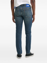 straight-leg jeans Highlights - Blue - Front button and zip fastening - Classic five pockets - Belt loops - Rear logo patch Imported Composition Cotton 94%, Organic Cotton 5%, Elastane 1% Washing instructions Read Manufacturer Guidelines