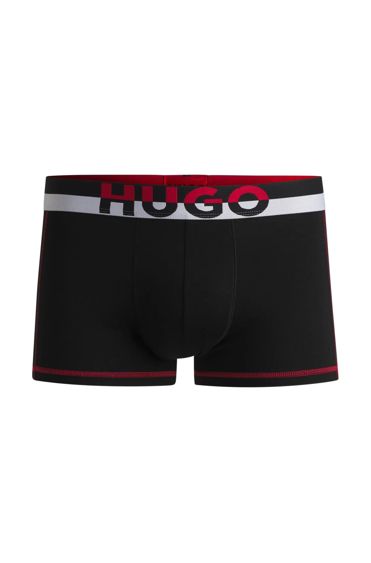 SIZE AND FIT The model wears a size M and is 6'1" tall with a, 38" chest, 29" waist and 38" hips. DETAILS TRUNK FASHION - 50534660 Regular-rise trunks with a color-blocked branded waistband by HUGO Menswear. This pair is crafted in stretch jersey with contrast stitching. Packaging: Box Exposed waistband Regular rise QUALITY & CARE INSTRUCTIONS Iron Medium Heat Do Not Tumble Dry Machine Wash Cold Do Not Bleach Quality: 95% Lyocell, 5% Elastane, Waistband: 50% Polyester, 36% Polyamid, 14% Elastane Do Not Dry Clean