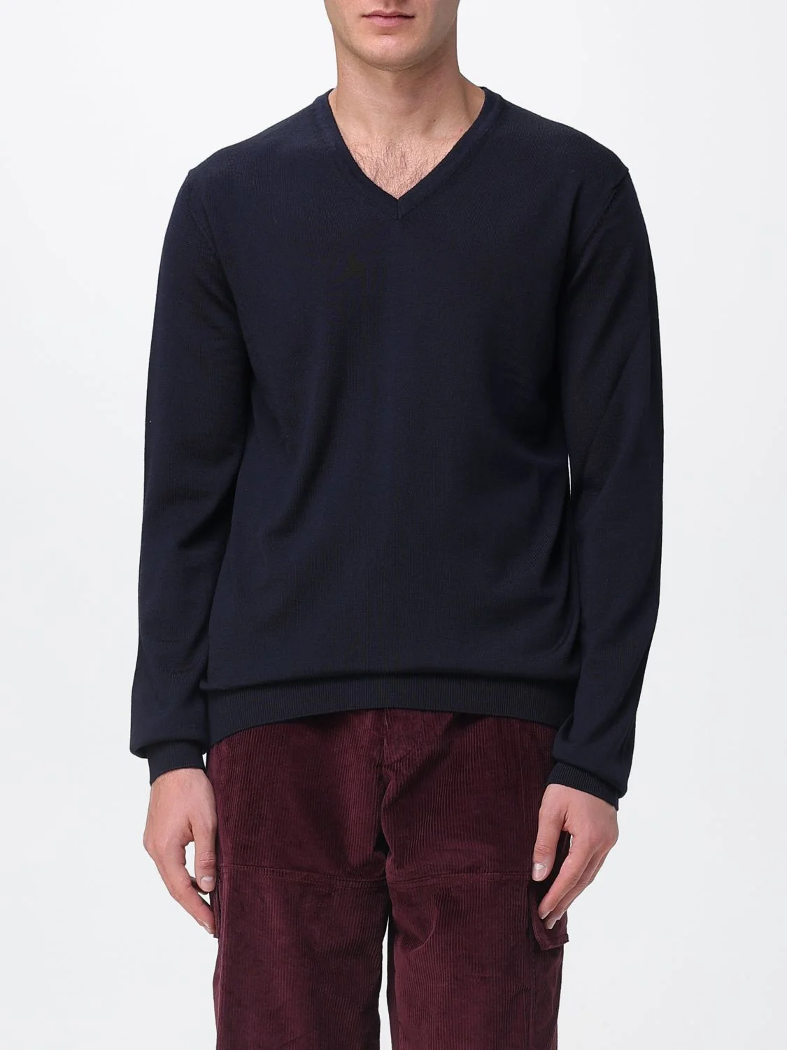 DESCRIPTION - Style: Basic, Casual - Neckline: V neckline - Shoulders: Regular - Sleeves: Long - Cuffs: Ribbed - Bottom: With ribbed edges - Materials: Wool - Pattern: Plain-colored DETAILS AND CARE Composition 100 LANA SIZE AND FIT Sizes not available Size and fit Slim fit Designer code: 50474172 410 Giglio Code: H52498 Designer: Hugo Collection: Hugo Men Category: Clothing Hugo