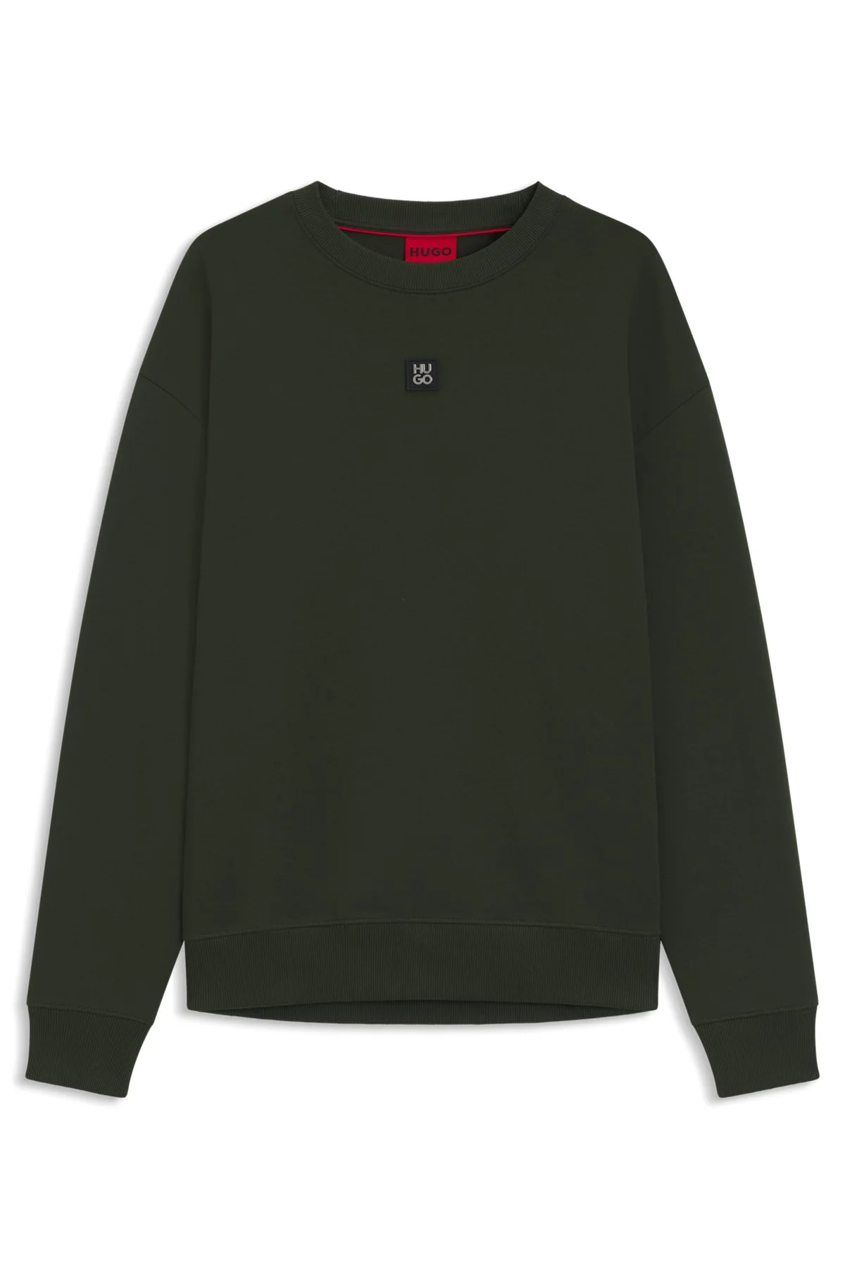 SIZE AND FIT The model wears a size M and is 6'2" tall with a, 36" chest, 28" waist and 36" hips. DETAILS Dettil - 50533689 A minimalist sweatshirt by HUGO Menswear. Trimmed with a stacked-logo badge, this relaxed-fit layer comes in soft cotton with stretch. Relaxed fit Neckline: Crew neck Fastening top: Slip-on Long sleeves Ribbed cuffs QUALITY & CARE INSTRUCTIONS Do Not Bleach Quality: 82% Cotton, 13% Polyester, 5% Elastane Do Not Dry Clean Iron Low Heat Machine Wash Cold Gentle Do Not Tumble Dry