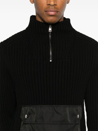 Syber sweater Highlights - Black - Organic cotton - Chunky ribbed knit - Panelled design - Stand-up collar - Front flap pocket - Drop shoulder - Long sleeves - Ribbed cuffs and hem - Short front zip fastening Imported Composition Polyester 100%, Organic Cotton 100% SIZE & FIT Model measurements Height 6 ft 1 in(1.85 m) Bust/Chest 38.58 in(98 cm) Hips 37 in(94 cm) Waist 30.31 in(77 cm) FittingInformation Designed for a slim fit, offering a comfortable fit that sits just away from the body Made with a midweight knit, this piece offers some stretch This piece fits true to size – take your usual size