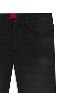 SIZE AND FIT The model wears a size 32/32 and is 6'1" tall with a, 32" chest, 27" waist and 33" hips. DETAILS HUGO 634 - 50517492 Tapered-fit jeans with a regular rise and signature trims by HUGO Menswear. This pair is crafted in black-black stretch denim with a light wash. Tapered fit Regular rise Button closure Pockets bottom front: Side pockets Tapered leg Pockets bottom back: Patch pocket Standard length Fit foot width: 34,0 cm (13.4 inches) QUALITY & CARE INSTRUCTIONS Quality: 99% Cotton (5% recycled), 1% Elastane, pocketing: 100% Cotton Machine Wash Cold Gentle Iron Medium Heat Do Not Dry Clean Do Not Tumble Dry Do Not Bleach