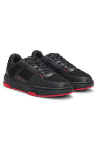 DETAILS Easy to wear from day to evening, these HUGO Menswear trainers feature mixed uppers and zigzag detailing. Faux suede, sporty mesh and synthetic coated fabric. Synthetic coated fabric, sometimes referred to as faux leather, is a fabric designed to resemble real leather, and/or display a matte, glossy, smooth, or textured, coated appearance. Laces Fully lined Packaging: Box Yarrow_tenn_mxpu - 50558023 QUALITY & CARE INSTRUCTIONS Upper material: 64% Polyurethane, 36% Polyester, Lining: 88% Polyester, 12% Polyurethane, Sole: 100% Rubber, Facing: 100% Polyester, 55% Polyamid, 45% Polyurethane, Innersole: 100% Polyester