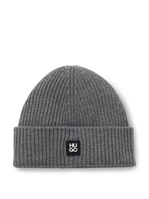VIRGIN-WOOL BEANIE HAT WITH STACKED-LOGO BADGE
