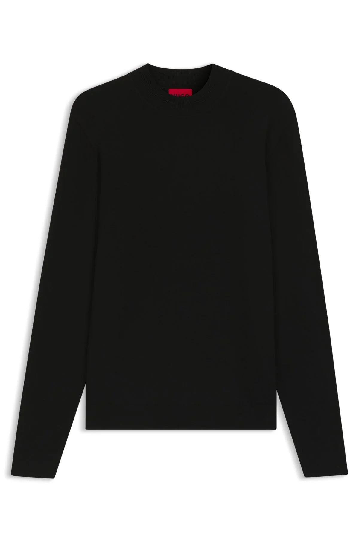 DETAILS San Marc-CV - 50546856 Featuring a high neckline with a logo at the back, this HUGO Menswear sweater is perfect for layering with tailoring. Slim fit Slim fit Neckline: Crew neck Long sleeves Standard length QUALITY & CARE INSTRUCTIONS Do Not Tumble Dry Machine Wash Cold Gentle Iron Low Heat Do Not Bleach Quality: 72% Viscose, 28% Polyester Do Not Dry Clean