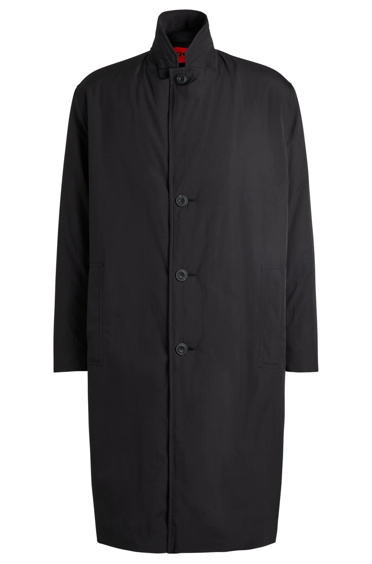 SIZE AND FIT The model wears a size 38R and is 6'0" tall with a, 33" chest, 29" waist and 36" hips. DETAILS Mansen2441 - 50524877 A button-front car coat in a laid-back fit by HUGO. Featuring signature details, this piece is crafted in water-repellent ripstop fabric. Relaxed fit QUALITY & CARE INSTRUCTIONS Iron Low Heat Do Not Wash Quality: 100% Polyester, Lining: 100% Polyester, Sleeve lining: 100% Polyester, Wadding: 100% Polyester very mild professional wet clean Do Not Bleach Do Not Tumble Dry Do Not Dry Clean
