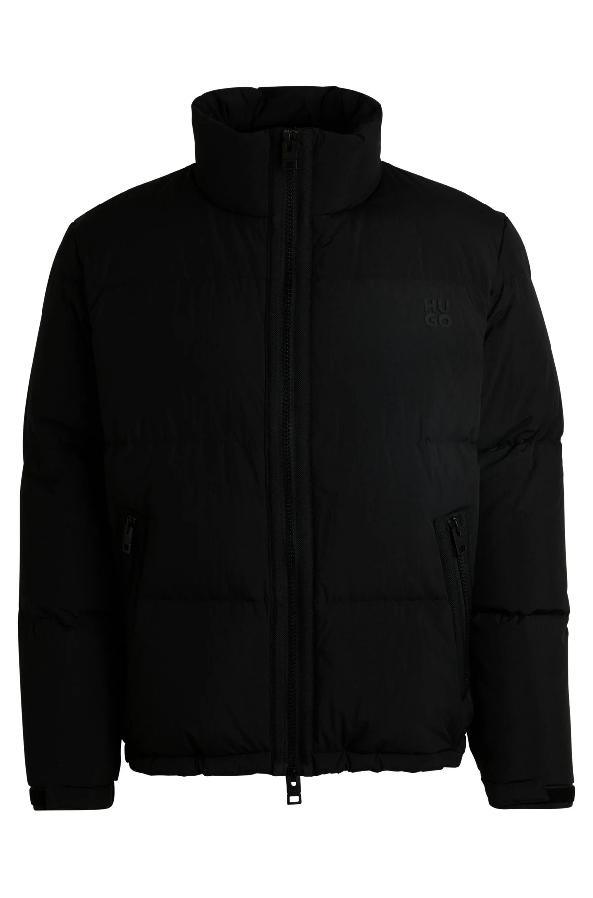 SIZE AND FIT The model wears a size M and is 6'2" tall with a, 33" chest, 29" waist and 35" hips. DETAILS Biron2441 - 50522226 A water-repellent jacket with certified duck down and feather filling by HUGO. This straight-fit piece is trimmed with a stacked logo. Regular fit Hooded collar Fastening top: Zip closure Pockets top: Zip pockets Inside zip pockets Adjustable cuffs Fully lined Standard length QUALITY & CARE INSTRUCTIONS Iron Low Heat Quality: 100% Polyamid, Lining: 100% Polyamid, Filling: 80% Duck down, 20% Duck Feather Machine Wash Cold Gentle Do Not Bleach Tumble Dry Low Heat Do Not Dry Clean