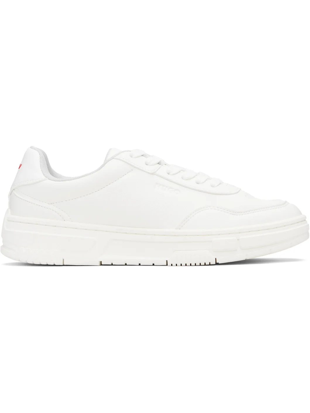 Low-top grained faux-leather sneakers. · Perforations at toe · Lace-up closure · Padded tongue and collar · Logo embossed at tongue and outer side · Eyelets at inner side · Graphic bonded at heel tab · Mesh lining · Treaded rubber sole Supplier color: White Upper: synthetic. Sole: rubber. Made in Viet Nam 252084M237008