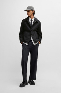 SIZE AND FIT The model wears a size L and is 6'3" tall with a, 35" chest, 31" waist and 35" hips. DETAILS Baks2511 - 50530760 A lightly padded coach jacket by HUGO Menswear. Featuring signature trims and an adjustable hem, this sleek, straight-fit piece comes in wool. Regular fit Kent collar Stand collar Fastening top: Zip closure Pockets top: Zip pockets Inside zip pockets Elasticized cuffs Fully lined Standard length Fit back length: 67 cm (26 inches) QUALITY & CARE INSTRUCTIONS Iron Low Heat Do Not Wash Do Not Bleach Reduced Dry Clean Quality: 80% Virgin wool, 20% Polyamid, Lining: 100% Polyester, pocketing: 100% Cotton, Wadding: 100% Polyester Do Not Tumble Dry
