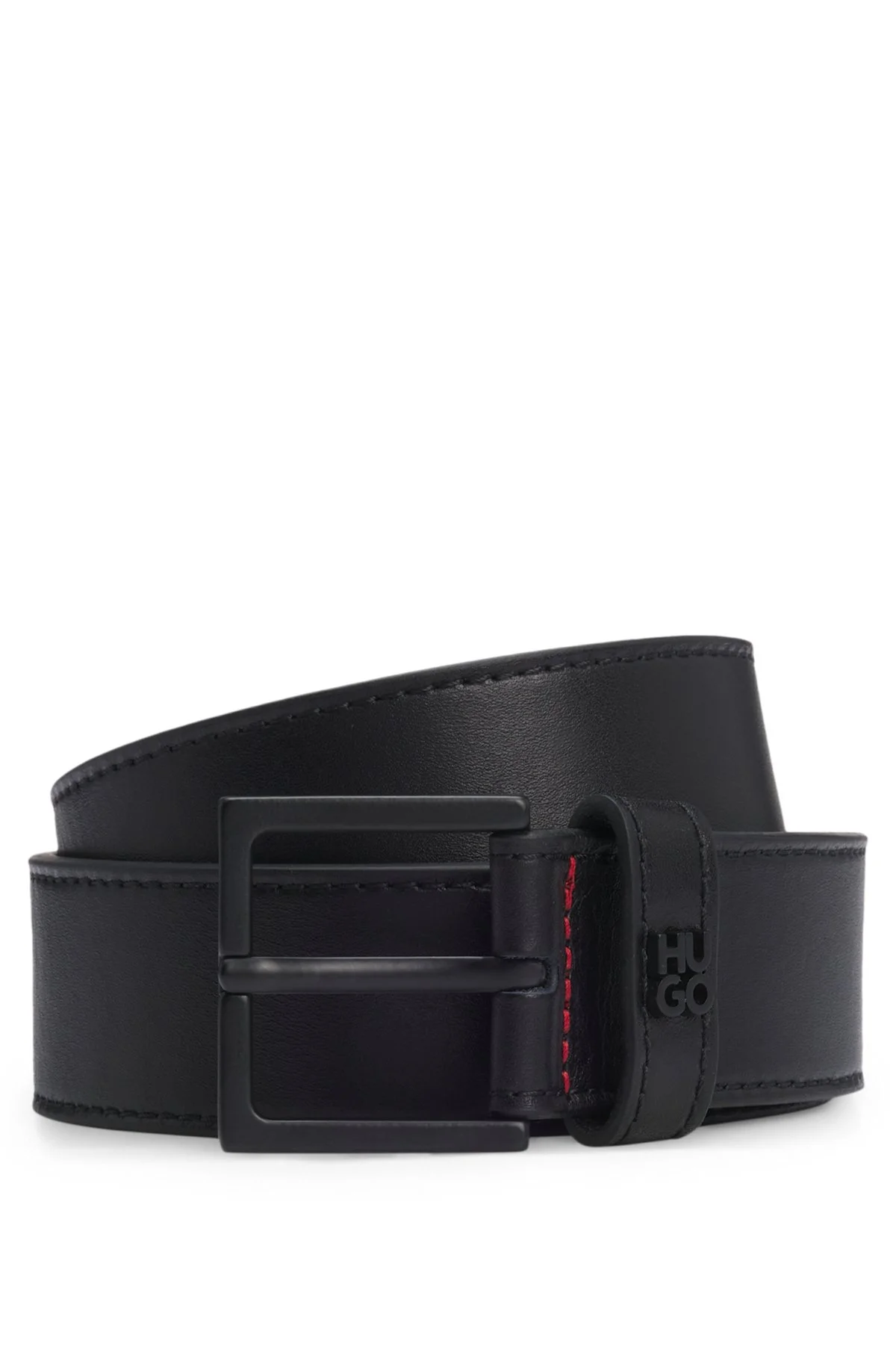 SIZE AND FIT The model wears a size 36 and is 6'0" tall with a, 34" chest, 29" waist and 36" hips. DETAILS With matte-black hardware including a stacked logo, this 3.5cm HUGO Menswear belt adds subtle attitude to your look. Rich leather. For the best fit, we advise ordering a belt one size larger than your waist size. Metal letters Width: 3,5 cm (1.4 inches) Hardware finishing: Matte black hardware Partially lined Giove-HU-GO-St_Sz35 - 50522495 QUALITY & CARE INSTRUCTIONS Quality: 100% Cow leather