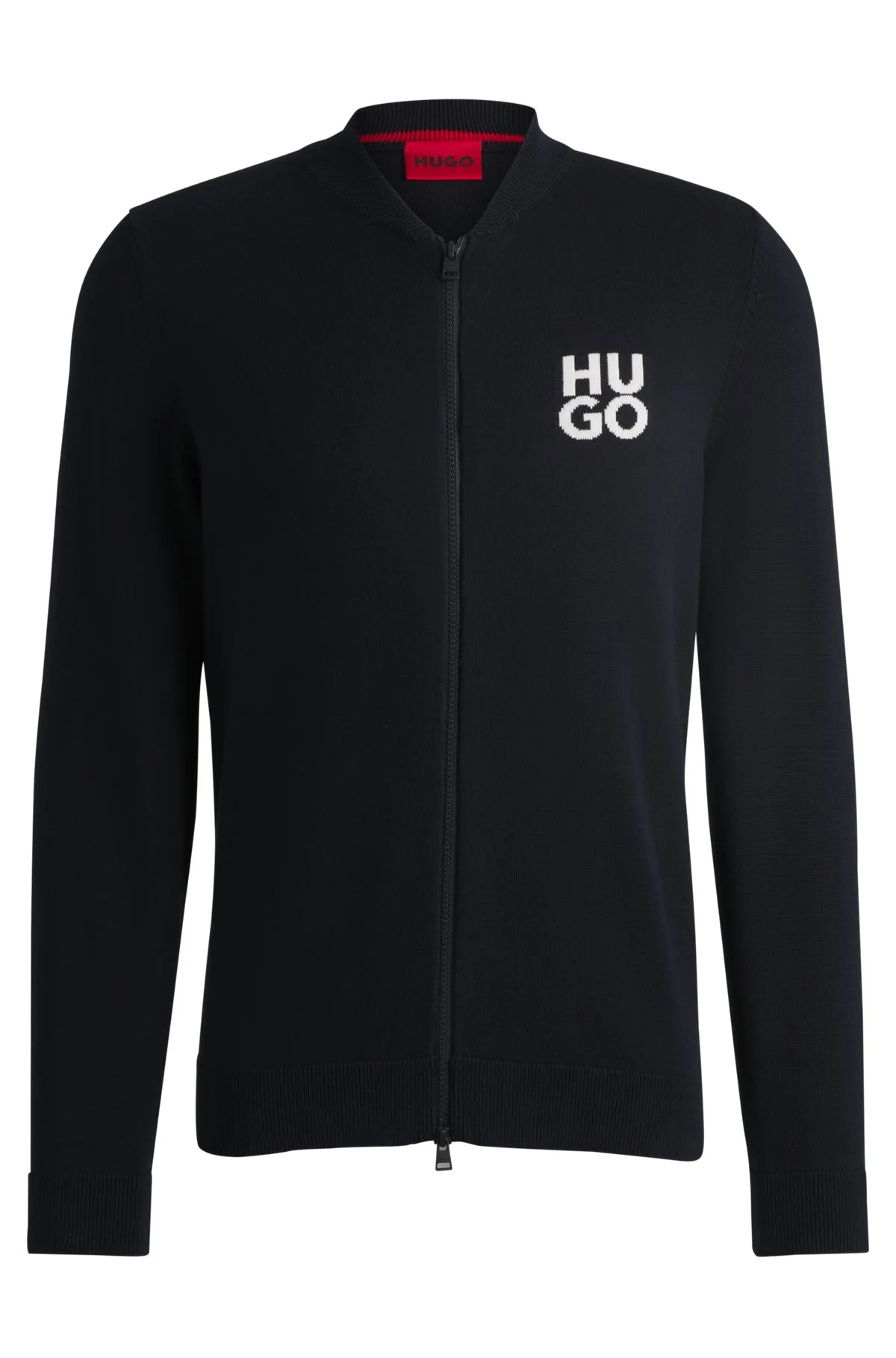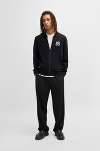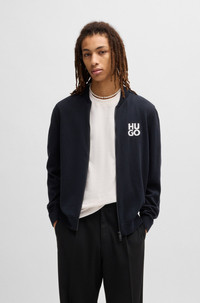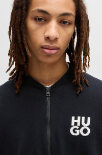 SIZE AND FIT The model wears a size M and is 6'1" tall with a, 33" chest, 25" waist and 35" hips. DETAILS Solouh - 50531819 A casual zip-up cardigan by HUGO Menswear. Knitted with a stacked logo, this easy-wear layer is cut to a regular fit. Our standards do not allow the use of synthetic fertilizers, pesticides or genetically modified seeds. Regular fit Neckline: Zip neck Long sleeves Standard length Fit back length: 68 cm (27 inches) QUALITY & CARE INSTRUCTIONS Dry Clean Only Quality: 100% Cotton Iron Medium Heat Do Not Bleach Cold, gentle machine wash; reduced spin speed. Do Not Tumble Dry