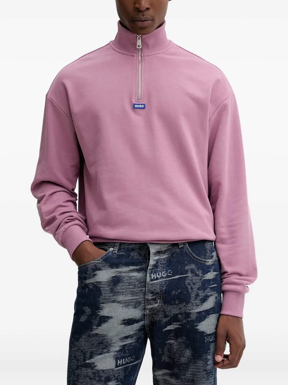 zip-up high-neck sweatshirt Highlights - Pink - High neck - Zip fastening - Logo patch - Ribbed cuffs - Ribbed hem Imported Composition Cotton 100% Washing instructions Read Manufacturer Guidelines