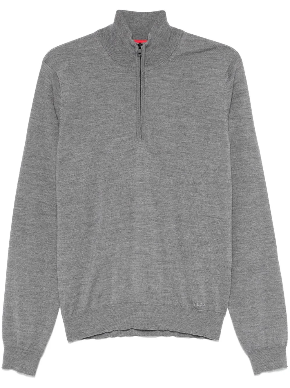 zip-up sweater Highlights - Medium grey - Virgin wool - Melange effect - Fine knit - Ribbed trim - Short front zip fastening - High neck - Logo-embroidered edge - Extra-long sleeves - Straight hem Imported Composition Virgin Wool 100% Washing instructions Machine Wash