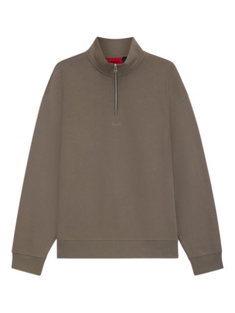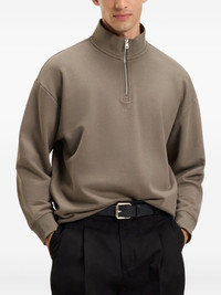 zip-up sweatshirt Highlights - Light brown - Zip fastening - High neck - Logo detail - Ribbed hem and cuffs Imported Composition Cotton 100% Washing instructions Machine Wash