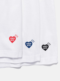This pack of three short sleeve t-shirts offers a soft cotton jersey construction. Each shirt features a ribbed collar and a small contrasting hem print, adding the playful Human Made touch. DETAILS - HM30CS037 - 100% Cotton - Pack of three t-shirts - Ribbed collar - Small hem print - Made in China