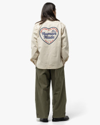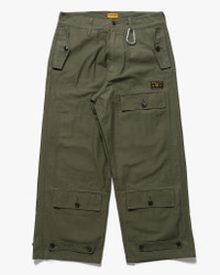 Crafted from a distinctive black satin fabric that evolves with wear, the HUMAN MADE Air Force Pants are a perfect blend of timeless style and functional design. The baggier silhouette gives a versatile structure that transitions seamlessly from casual to elevated looks. Cleverly placed front flap pockets add both utility and flair. With fabric that becomes unique with age, these pants are for those who value both craftsmanship and individuality. DETAILS - HM29PT009 - 100% cotton - Relaxed, baggy fit - Zipper fly - Adjustable drawstring - 7 flap pockets with button closure - Stitched brand tag on left leg - Heart-button details - Button cinch on leg opening - Made in China
