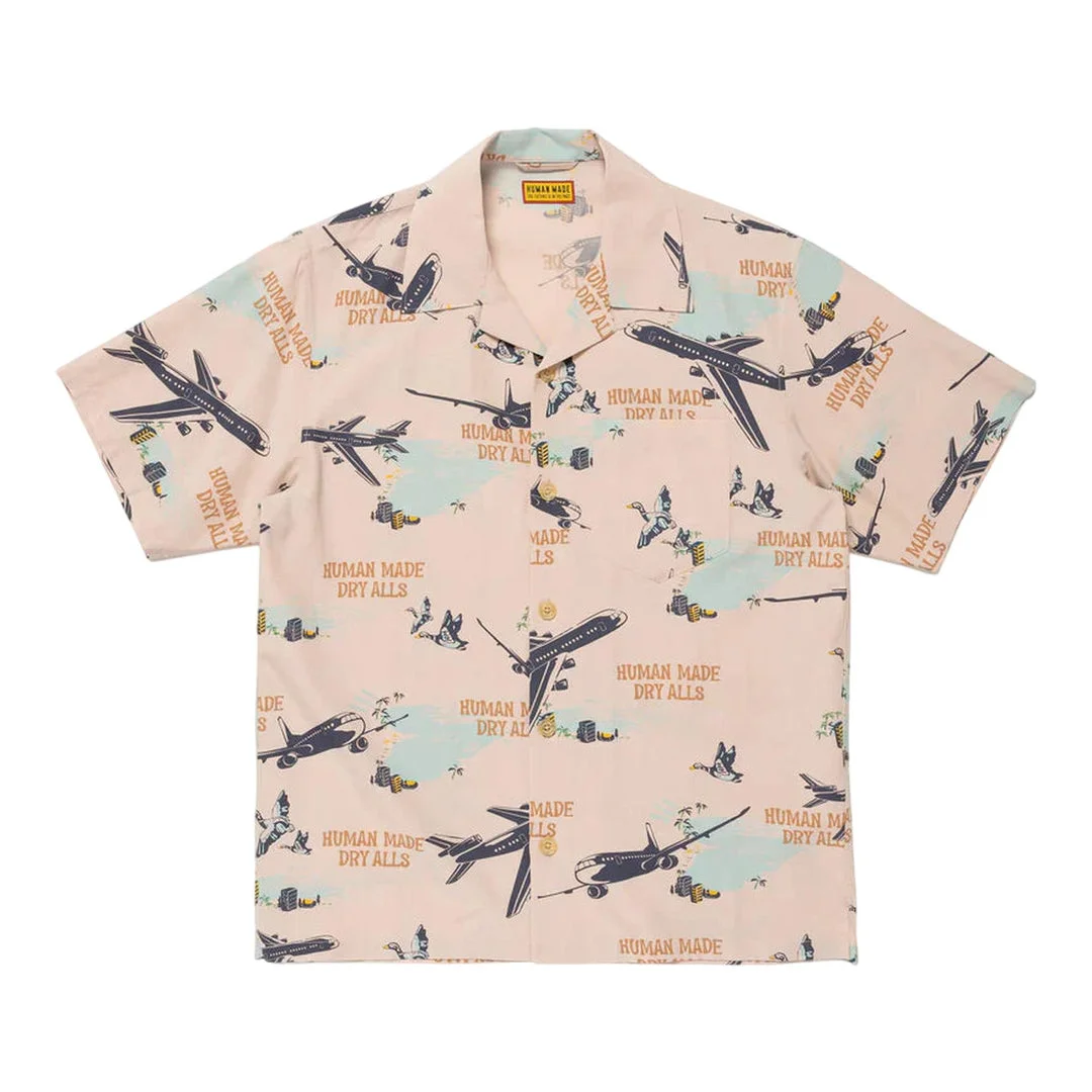 600065990MLT00L / HM29SH025/00/PINK - Camp collar design - Short sleeves - Button-front closure - All-over aviation and tropical print - Lightweight cotton construction - Relaxed fit - Signature Human Made branding throughout The Human Made Aloha Shirt delivers premium Japanese streetwear with vintage-inspired aviation graphics and tropical island motifs. Crafted from lightweight cotton in soft pink with all-over print featuring airplanes, palm trees, and signature 'Human Made Dry Alls' branding. The camp collar construction and relaxed fit create an authentic Hawaiian shirt silhouette with contemporary streetwear edge.