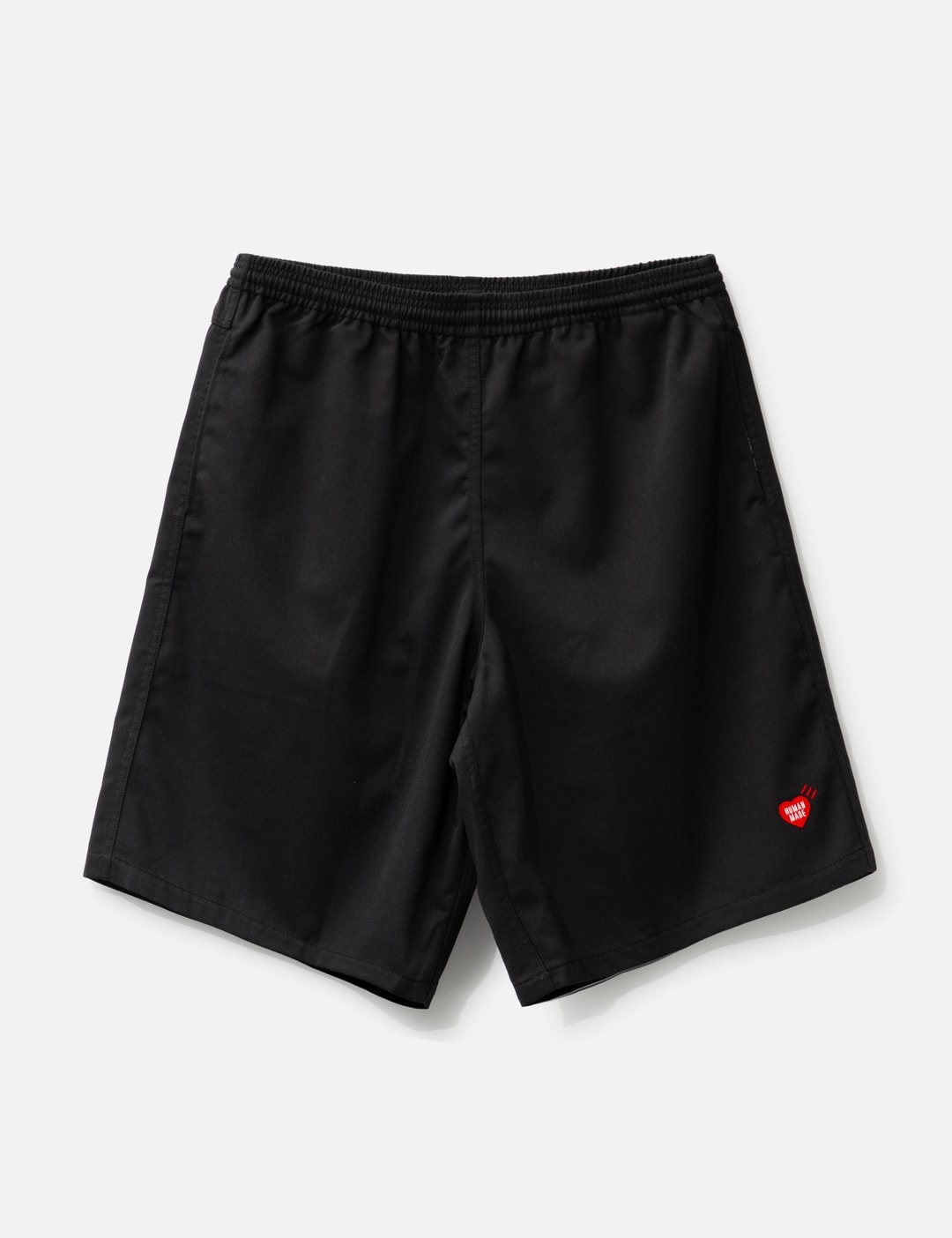 - Human Made - Beach Shorts - Elastic waistband with drawstring - Logo embroidery on left hem - Two side pockets - Single rear pocket - Lined pockets - Color: Black - Material: 65% Polyester, 35% Cotton - See more Shorts and Clothing