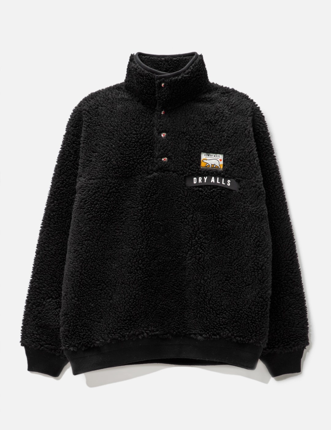 - Human Made - Boa Fleece Pullover - Stand collar - Made of boa fleece fabric - 1/2 button closure - Front chest pocket - Ribbed cuffs and hem - Embroidered branding on the back - Color: Black - Material: 100% Polyester; 80% Polyester, 20% Acrylic - See more Sweatshirts and Clothing SIZING Men - Model wears size L - Model measures: Height 189cm, Chest 32”/81cm, Waist 27”/69cm, Hip 35.5”/90cm - Model wears size S - Model measures: Height 172cm, Chest 32”/81cm, Waist 23’’/58.42cm, Hip 87.63/cm