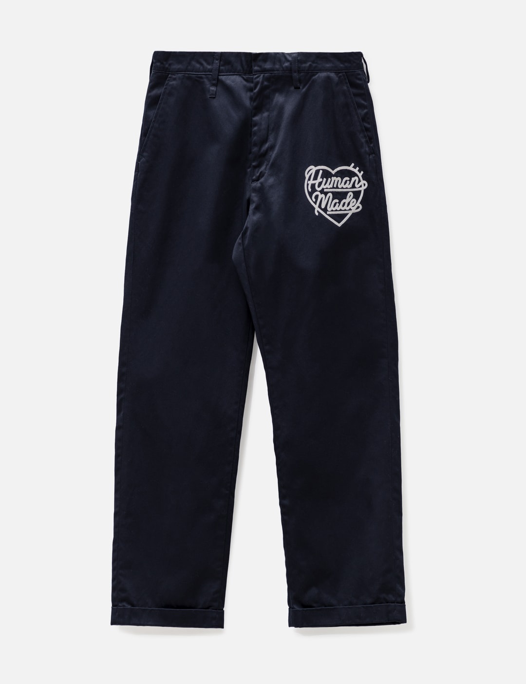 - Human Made - Chino Pants - Regular fit - Heart embroidery on the left - Carabiner clip - Two side pockets - Four welt pockets on the back - Color: Navy - Material: 100% Cotton - See more Pants and Clothing SIZING - Model wears size M - Model measures: Height 189cm, Chest 37”/96.5cm, Waist 30”/76.2cm, Hip 37”/94cm