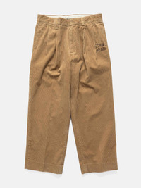 Human Made Corduroy Pants blend classic tailoring with a wide, pleated silhouette for a comfortable yet sophisticated look. Made from soft, textured cotton corduroy, they feature playful embroidered logos, iPhone-sized side pockets, hip flap pockets, and a carabiner clip for practical styling details. DETAILS - HM30PT008 - 100% Cotton - Wide fit - Pleated waist - Inseam hand pockets - Button flap closure seat pockets - iPhone size utility pockets on legs - Embroidered text motifs on leg - Hook closure and zip fly - Carabiner attachment - Made in China