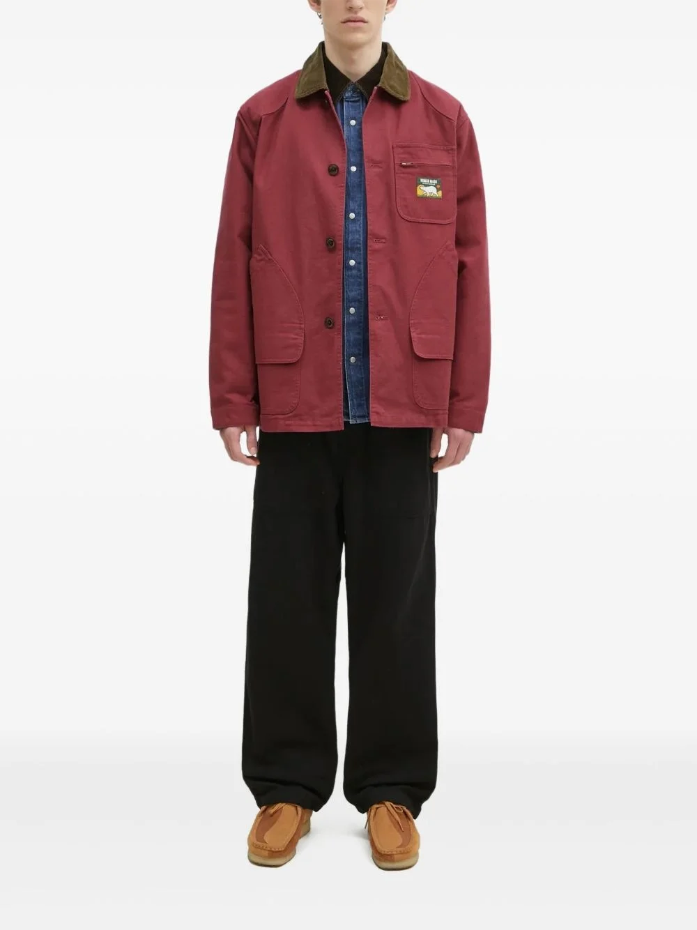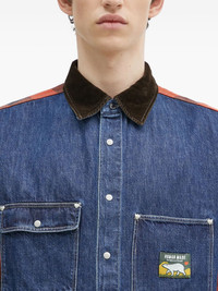 denim plaid panelled shirt Highlights - Red - Denim - Plaid-check pattern - Corduroy collar - Chest patch pocket - Button fastening Imported Composition Cotton 100%, Cupro 100% Washing instructions Read Manufacturer Guidelines