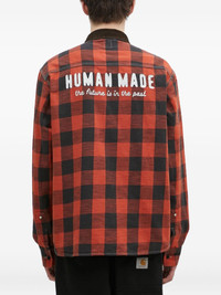 denim plaid panelled shirt