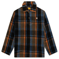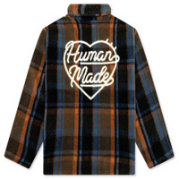The Fleece Pullover by Human Made is adorned with a plaid pattern weave. Crafted from polyester and nylon, it is designed to have a relaxed fit with a polo-collar. The button up pullover is decorated with a wool-printed logo on the back and embroidered logo on the chest. - 94% Polyester, 4% Wool - Polo-collar - Embroidered brand logo - Wool-printed logo - Style No: HM30CS015-BRN
