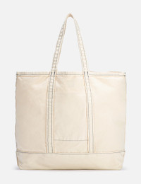 - Human Made - Garment Dyed Tote Bag - Garment dyed cotton canvas fabric - Embroidered logo at front - Top handle - Main compartment with one interior pocket - Color: White - Material: 100% Cotton - See more Tote Bags, Bags and Accessories SIZING Approximate dimensions: - Height: 39cm - Width: 54cm - Depth: 13cm - Strap Length: 22cm