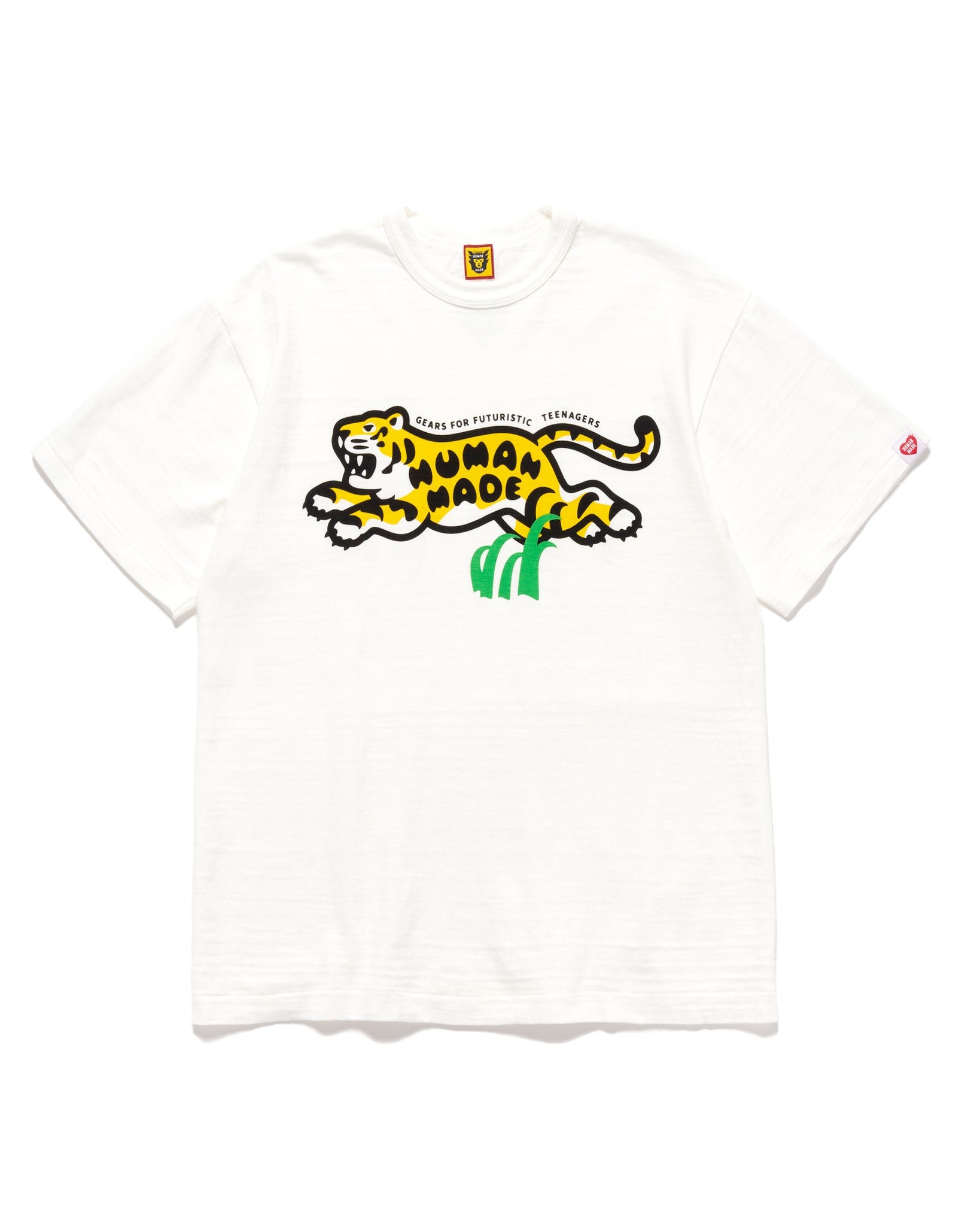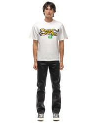 This short sleeve t-shirt is crafted with a slubbed cotton jersey and tied together with a bound collar. Large silkscreen graphic on the chest and small graphic on the back. A woven brand label at the inner collar and left sleeve completes the garment. Made in Japan. DETAILS - HM24TE001 - 100% cotton - Bound collar - Graphic prints throughout - Made in Japan