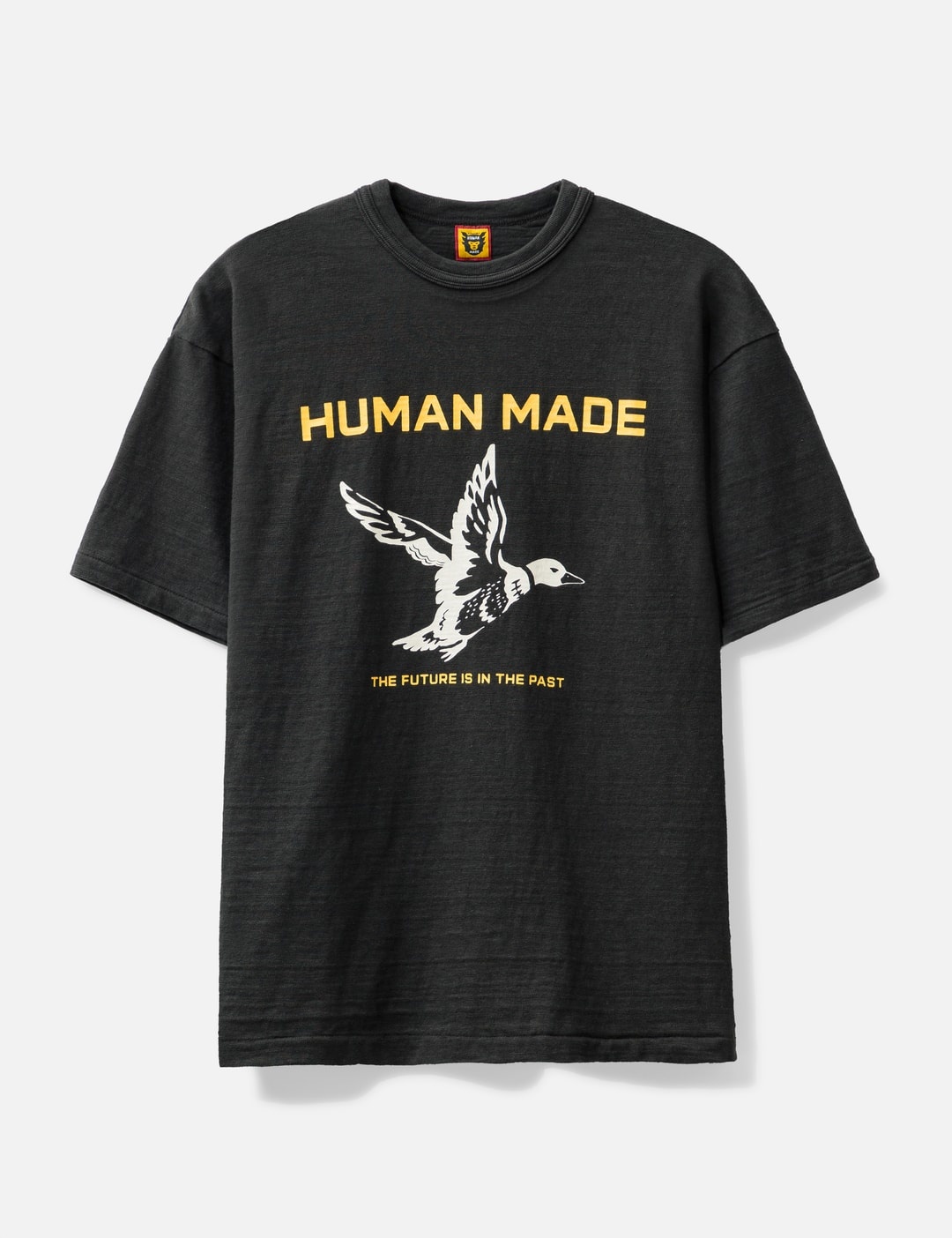 - Human Made - Graphic T-shirt #19 - Crewneck - Straight hem - Duck graphic on the front - With Human Made’s standard uneven slub yarn - Color: Black - Material: 100% Cotton - See more SS T-Shirts, T-Shirts and Clothing SIZING - Model wears size L - Model measures: Height 183cm, Chest 35.5”/90cm, 30”/76cm, Hip 33”/84cm
