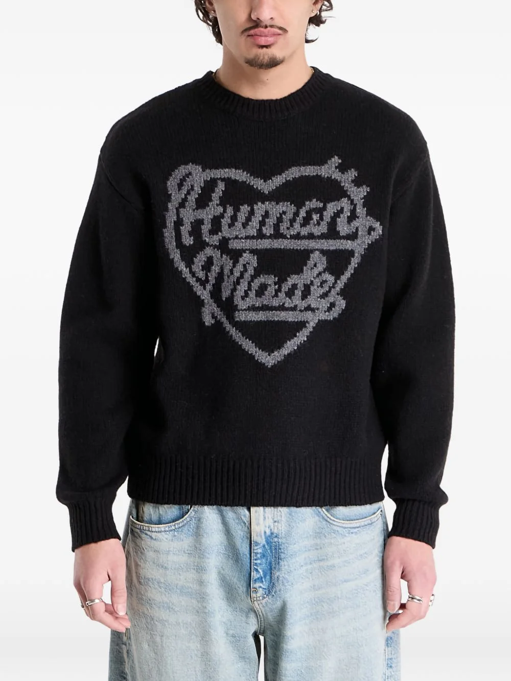 heart knit sweater Highlights - Black - Heart motif - Crew neck - Long sleeves - Ribbed trims Imported Composition Wool 79%, Nylon 21% Washing instructions Read Manufacturer Guidelines