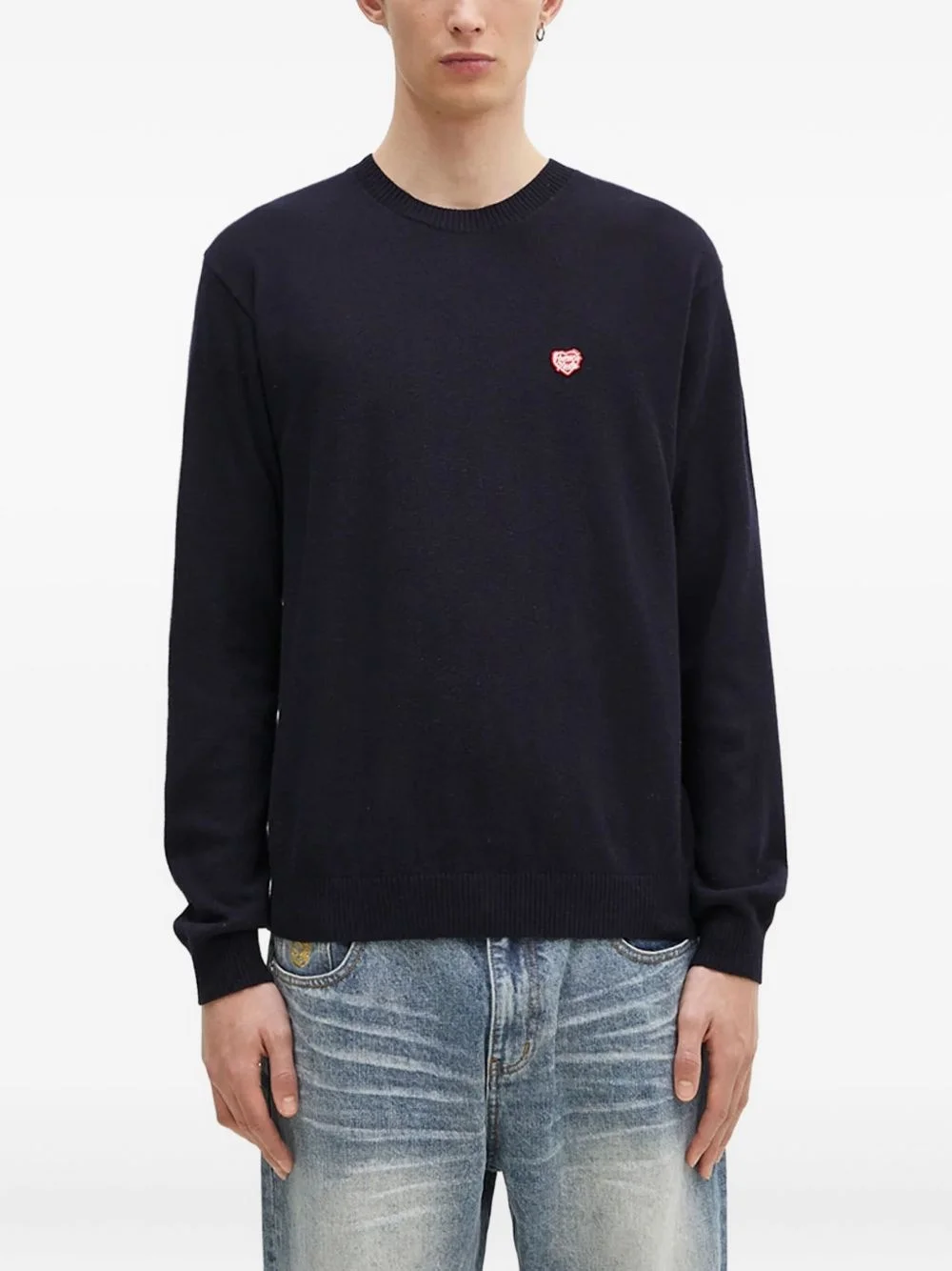 heart-logo wool sweater Highlights - Navy blue - Heart-shaped logo patch - Crew neck - Long sleeves - Ribbed hem Imported Composition Wool 100% Washing instructions Read Manufacturer Guidelines
