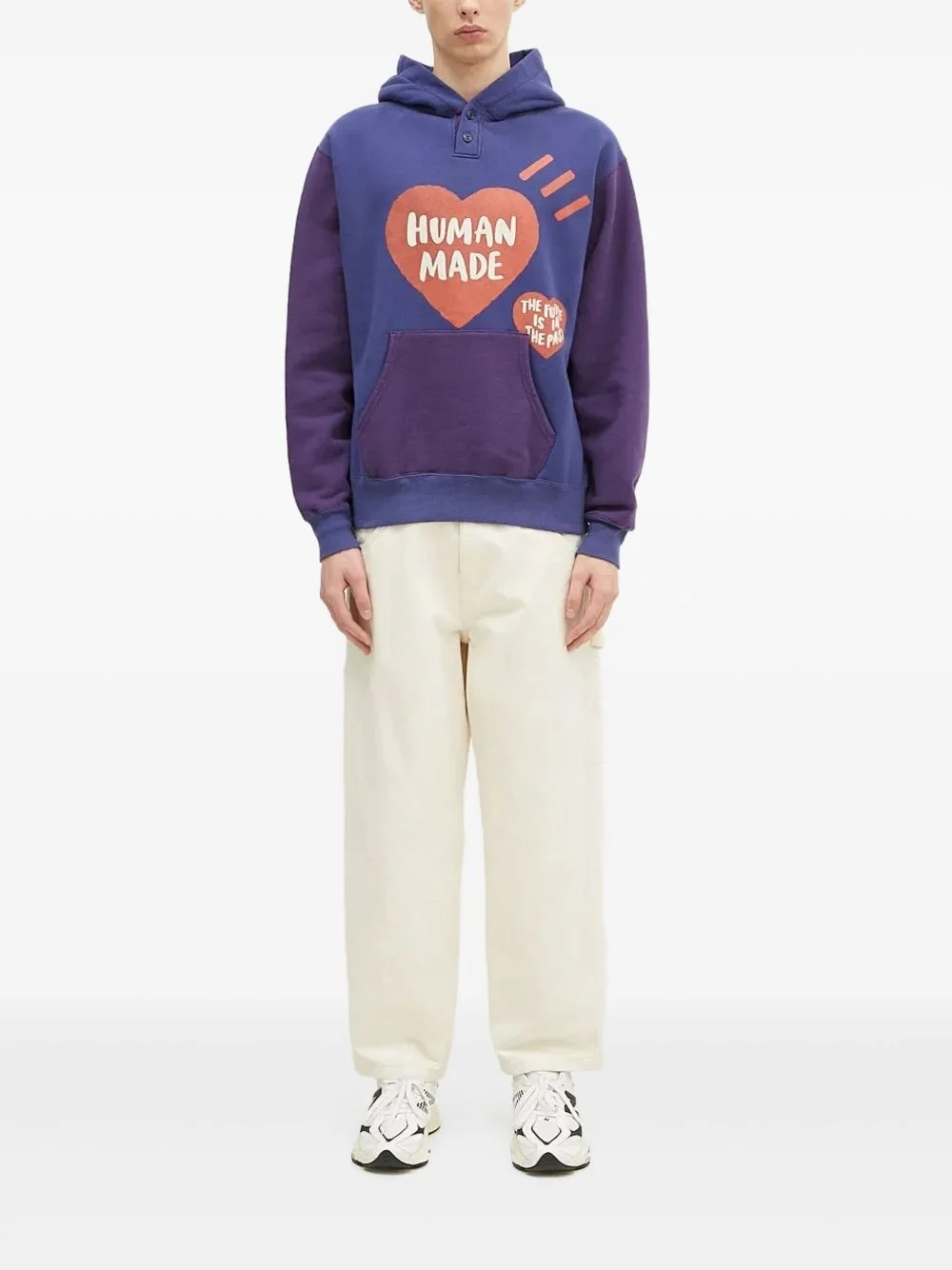heart-print two-tone hoodie Highlights - Navy blue - Heart motif - Two-tone design - Button fastening - Graphic print - Kangaroo pocket Imported Composition Cotton 100% Washing instructions Read Manufacturer Guidelines