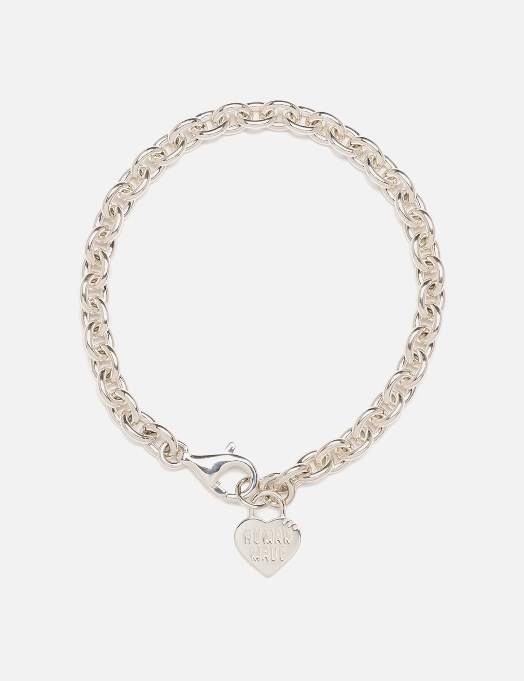 - Human Made - Human Made - Heart Silver Bracelet - Made of 925 silver - Heart shaped charm - Debossed Human Made text - Lobster clasp - Made in Thailand - Comes with dust bag - Color: Silver - Material: 925 Silver - See more Bracelets, Jewelry and Accessories - Max. Length: 21cm - Vendor Code: HM30GD086