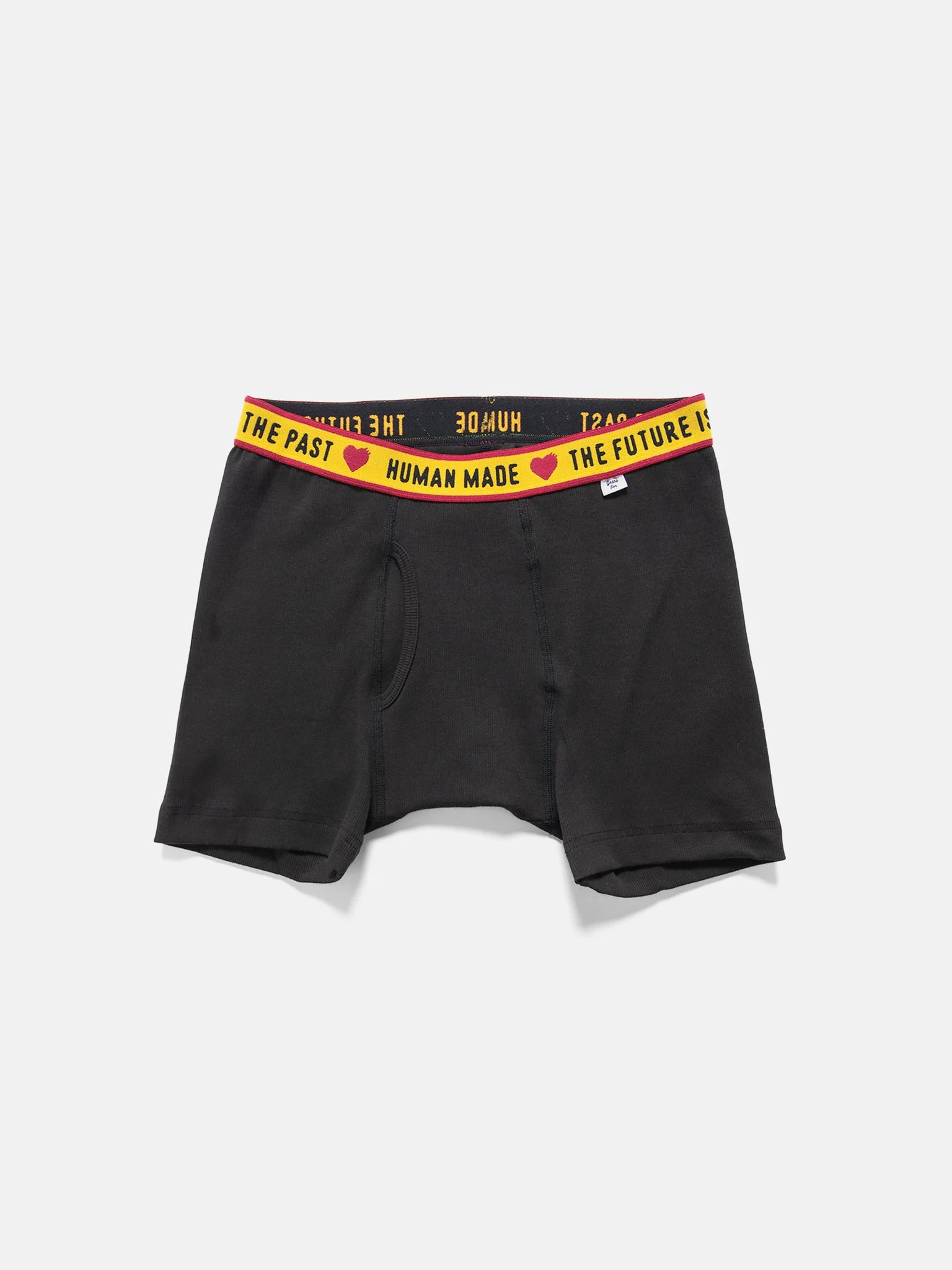 Made from a premium cotton blend, these boxer briefs feature a playful, colorful printed nylon waistband with Human Made’s iconic heart motif and logo. The short rise and ergonomic crotch gusset ensure a snug and comfortable fit. Perfect for adding a touch of fun to your essentials while maintaining functionality. DETAILS - HM00GD003 - Body: 98% Cotton 2% Spandex - Waist: 64% Nylon 29% Polyester 7% Spandex - Printed spandex waistband - Short rise
