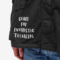 Nigo delves into by-gone eras with his brand Human Made, showcasing his fondness for American vintage military gear. This parka takes a nod to utilitarian garb, with a roomy cut and plenty of practical features like adjustable snap button cuffs, an adjustable hood and a drawcord fishtail hem. - 70% Cotton, 30% Nylon - Adjustable Hood - Snap Button Closure & Cuffs - Fishtail Drawcord Hem - Front Pockets - Printed Branding - Made in Japan - Hand Wash