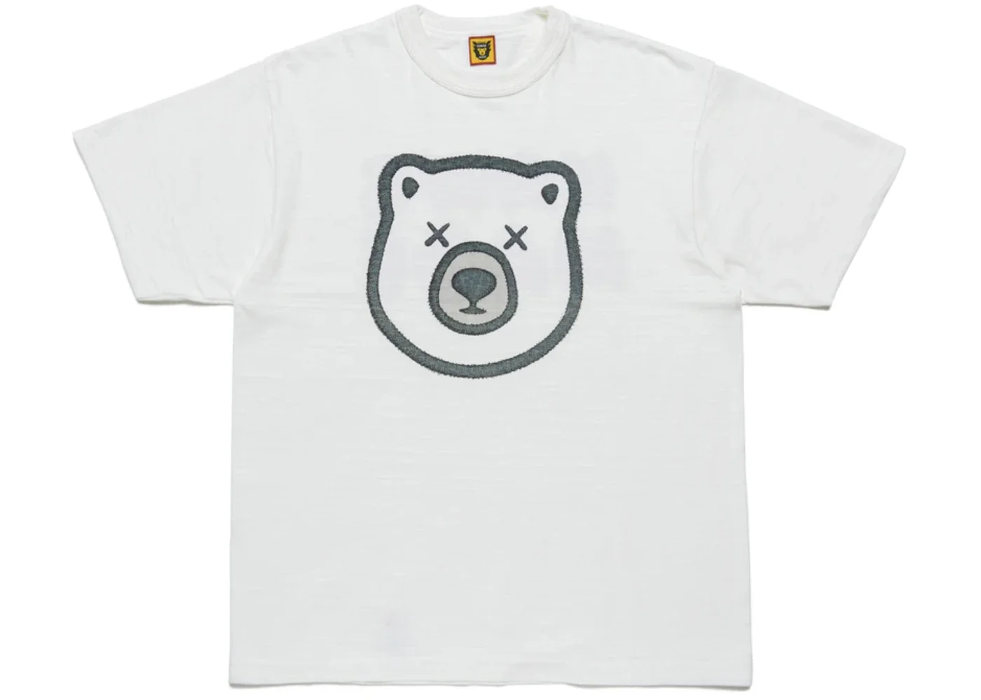 This white KAWS x Human Made T-shirt was released as a part of the artist and streetwear brand's first-ever collaborative collection, which was made available alongside KAWS' Tokyo First Exhibition. KAWS and Human Made's collaborative T-shirt release was delivered in close proximity to several other collaborations for the artist from sacai to Uniqlo to Travis Scott. This white Human Made T-shirt features a grey outline of a bear on the front with KAWS' signature XX eyes. On the back of the T-shirt is a KAWS x Human Made logo graphic. The Human Made x KAWS 5 T-shirt in white was released on July 23rd, 2021, at the retail price of $98. - Season SS21 - Color White - Release Date 2021-07-23 - Retail Price 98 - Featured false