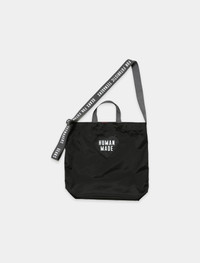 Nylon tote bag. Two top handles. Adjustable shoulder strap at sides. Graphic logo text, logo print and texts at front and back. - 100% Nylon SKU: HM25GD043-BLK