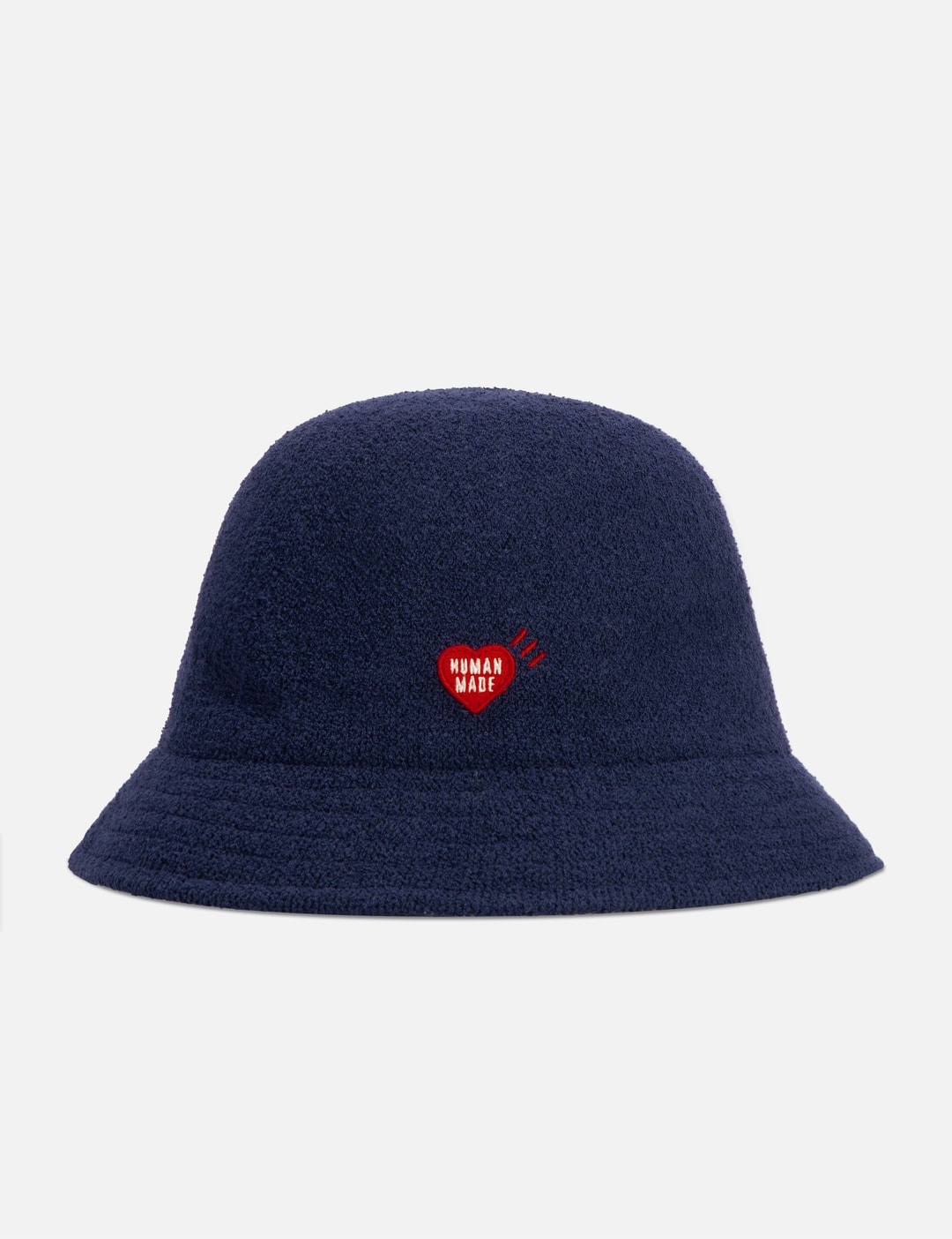 - Human Made - Pile Bucket Hat - Bucket hat - Knitted with pile fabric - Soft and lightweight - Embroidered heart logo - Color: Navy - Material: 65% Acrylic, 35% Nylon - See more Bucket Hats, Hats and Accessories SIZING Approximate dimensions: - Size M - Brim Width: 5cm - Crown Height: 15cm - Circumference: 57cm - Size L - Brim Width: 5cm - Crown Height: 15cm - Circumference: 60cm