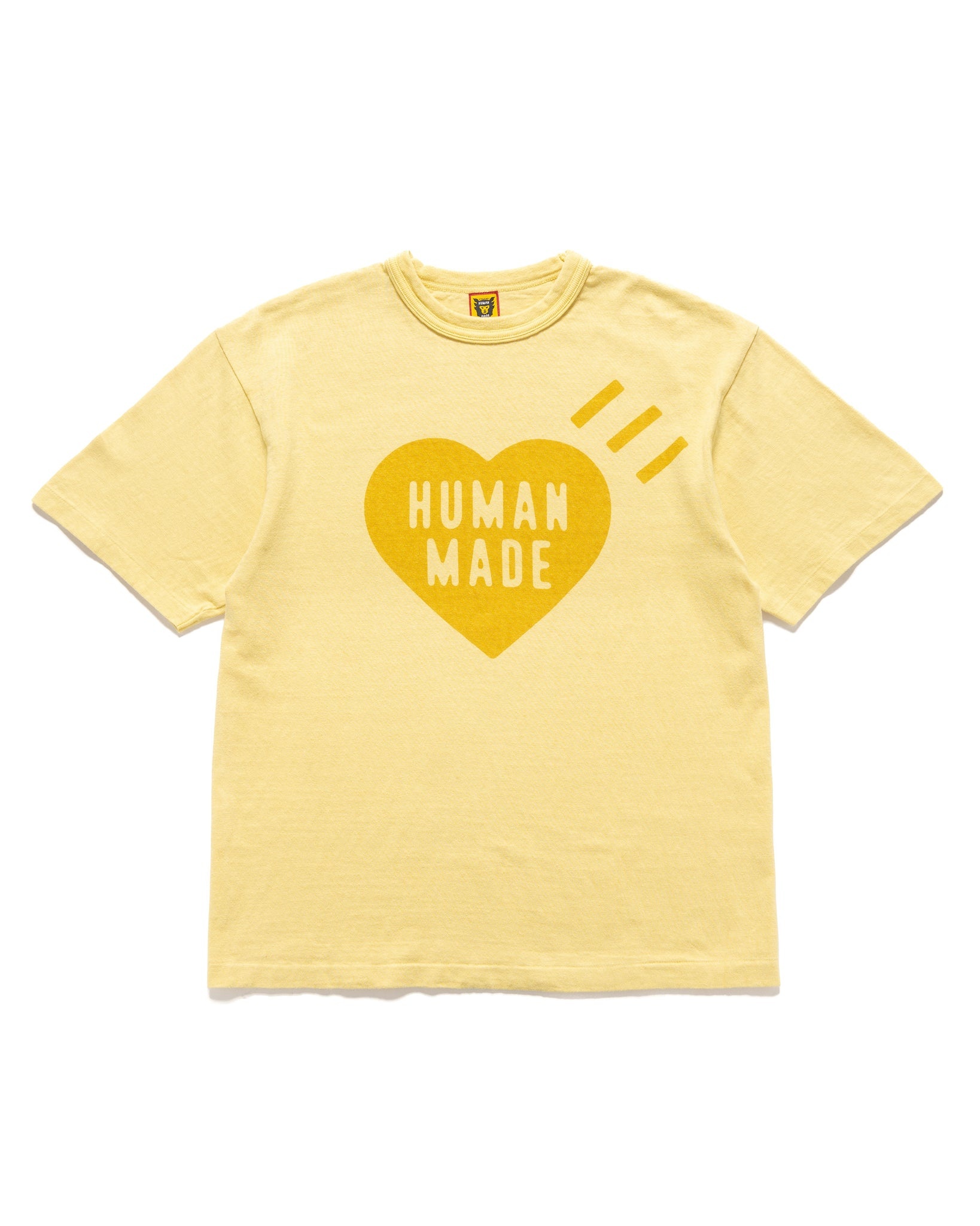 Signature short sleeve t-shirt built from a slub cotton exclusive to Human Made that features unparalleled softness, durability, and characteristic texture. Featuring a print of their iconic logo and finished with a plant dye treatment to achieve a lushous yellow hue. Made in Japan. DETAILS - HM25CS054 - 100% cotton - Plant dyed treatment - Signature woven brand label - Made in Japan