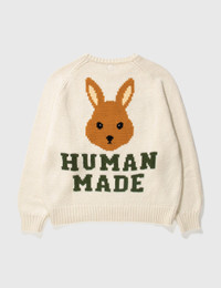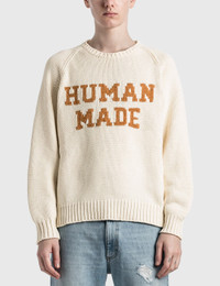 - Human Made - Raglan Sleeve Knit - Cotton-acrylic blend knit exterior - Ribbed neckline, cuffs, and hem - Jacquard woven logo at front and rear - Unlined - Color: White - Material: 60% Cotton, 40% Acrylic - See more Knitwear and Clothing SIZING - Model wears size L - Model measures: Height 190cm, Chest 34”/84cm, Waist 28”/70cm, Hip 35”/90cm