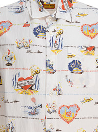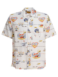 A playful option for warm-weather layering, the Human Made Printed Shirt White delivers a standout seasonal pattern on a breezy, drapey silhouette. The relaxed fit and fluid rayon-linen blend offer light structure and ease of movement, ideal for summer styling or vacation looks. DETAILS - HM29SH017 - 55% rayon, 25% linen, 20% cotton - Relaxed fit - Standard collar - Button front closure - Chest patch pocket - Back yoke - Set-in sleeves - Straight hem - Made in China